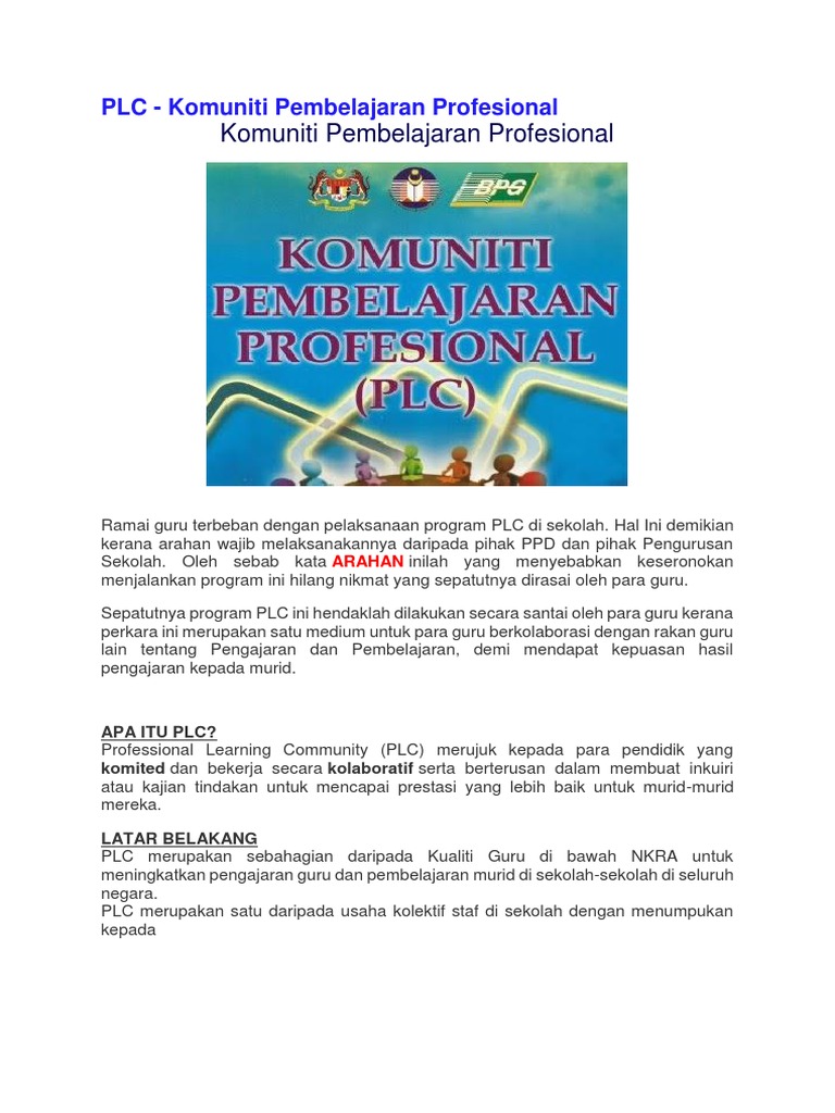 Dalam cids, konsep plc ini diperluaskan lagi kepada golongan pelajar dan golongan di luar sekolah berkonsepkan program sarana komuniti termasuk golongan profesional, golongan cendekiawan di pusat individu lain yang terlibat dalam pendidikan. Bahan plc kit plc download. Dalam hal ini plc sangatlah penting dilakukan untuk memberikan pemahaman yang sangat mendalam mengenai dinamika persaingan suatu produk. Pengertian plc (programmable logic controller) biasanya digunakan untuk menggantikan sistem kontrol berbasis relay yang tidak logic, yakni plc memiliki kemampuan dalam memproses input secara aritmatik dan logic (alu). Plc ialah singkatan kepada program professional learning communities.