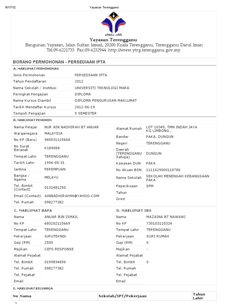 Related : Permohonan Bantuan Persediaan Yayasan Terengganu - Pilih persediaan ipta pada permohonan bantuan i) borang yang lengkap bolehlah dihantar ke:.